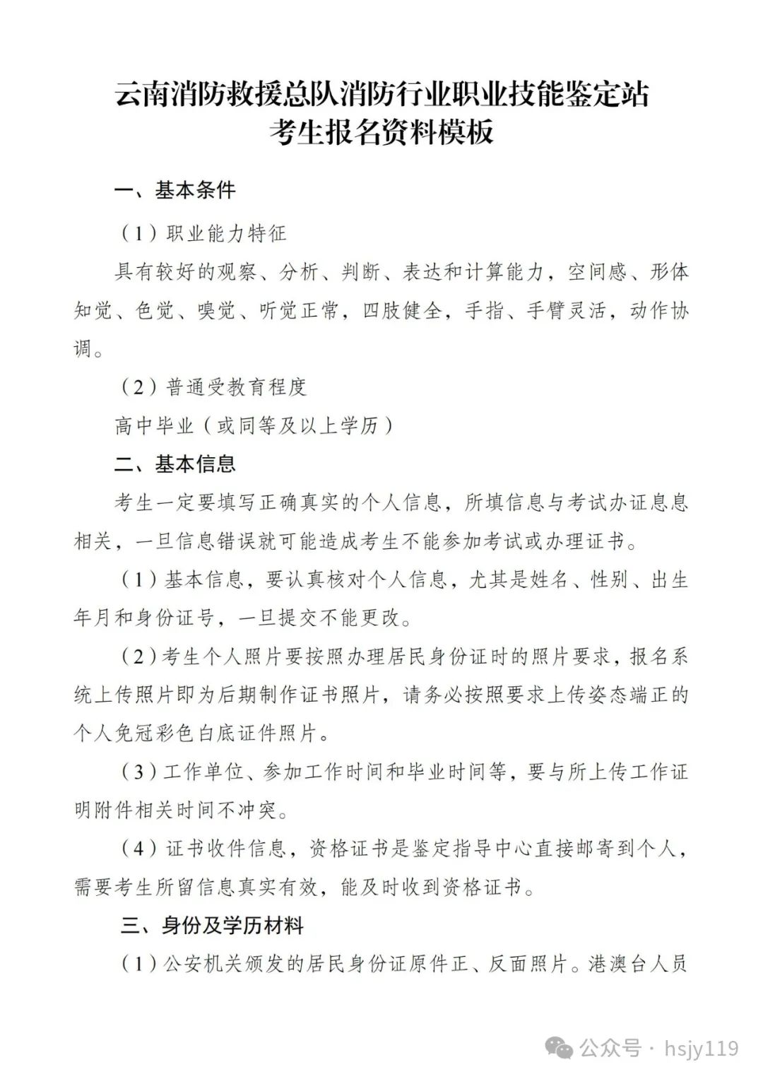 附件1:云南消防救援总队消防行业职业技能鉴定站考生报名资料模板