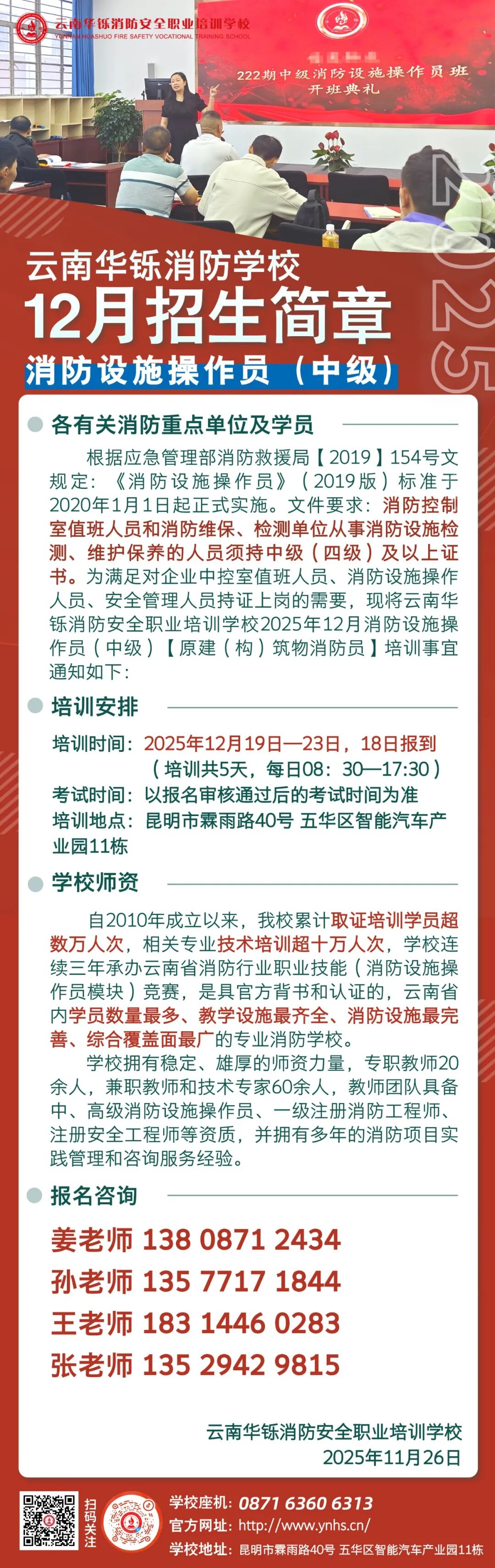 『招生简章』云南华铄消防安全职业培训学校2025年12月消防设施操作员(中级)招生简章来了,快报名!